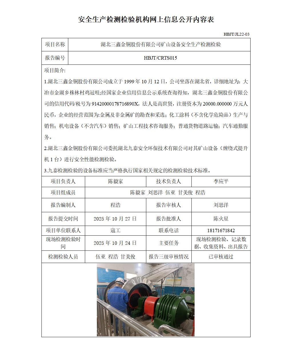 下一篇:?中海油化學(xué)宜昌礦業(yè)有限公司礦山設(shè)備安全生產(chǎn)檢測(cè)檢驗(yàn)