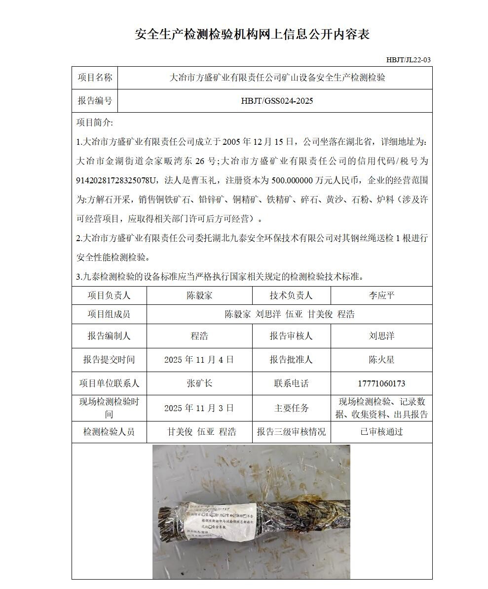 下一篇:?大冶市天華礦業(yè)有限公司礦山設(shè)備安全生產(chǎn)檢測檢驗(yàn)