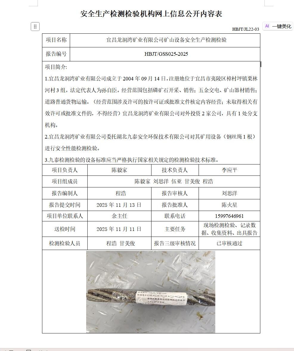 下一篇:?宜昌楓葉店子坪磷礦有限公司礦山設(shè)備安全生產(chǎn)檢測檢驗