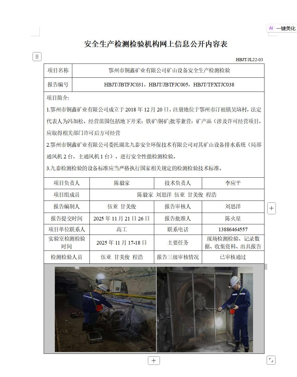 下一篇:?湖北雞籠山黃金礦業(yè)有限公司礦山設(shè)備安全生產(chǎn)檢測檢驗(yàn)