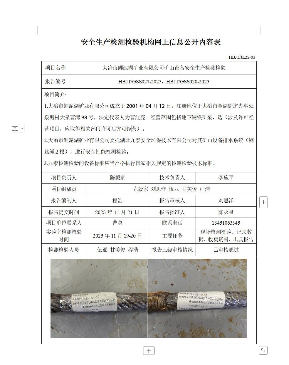 上一篇:?湖北雞籠山黃金礦業(yè)有限公司礦山設(shè)備安全生產(chǎn)檢測(cè)檢驗(yàn)