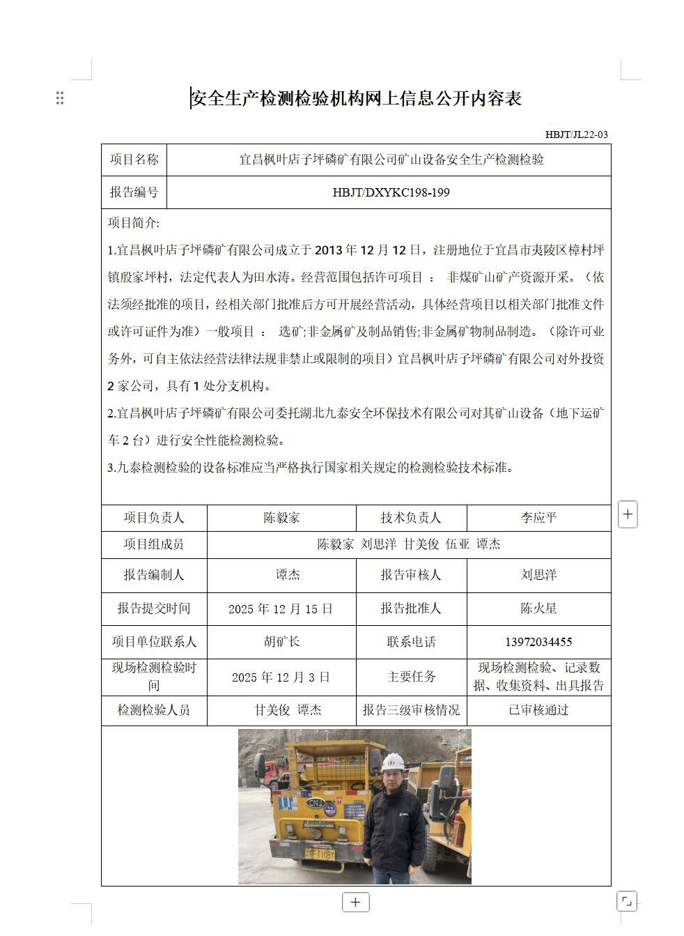 上一篇:?宜昌楓葉店子坪磷礦有限公司礦山設(shè)備安全生產(chǎn)檢測檢驗(yàn)