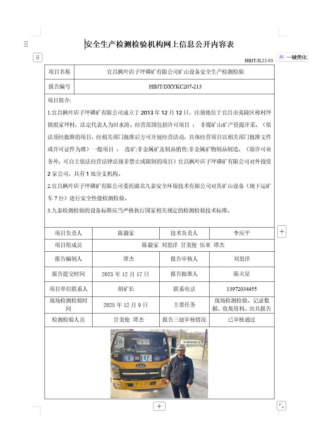 下一篇:?宜昌楓葉店子坪磷礦有限公司礦山設(shè)備安全生產(chǎn)檢測檢驗