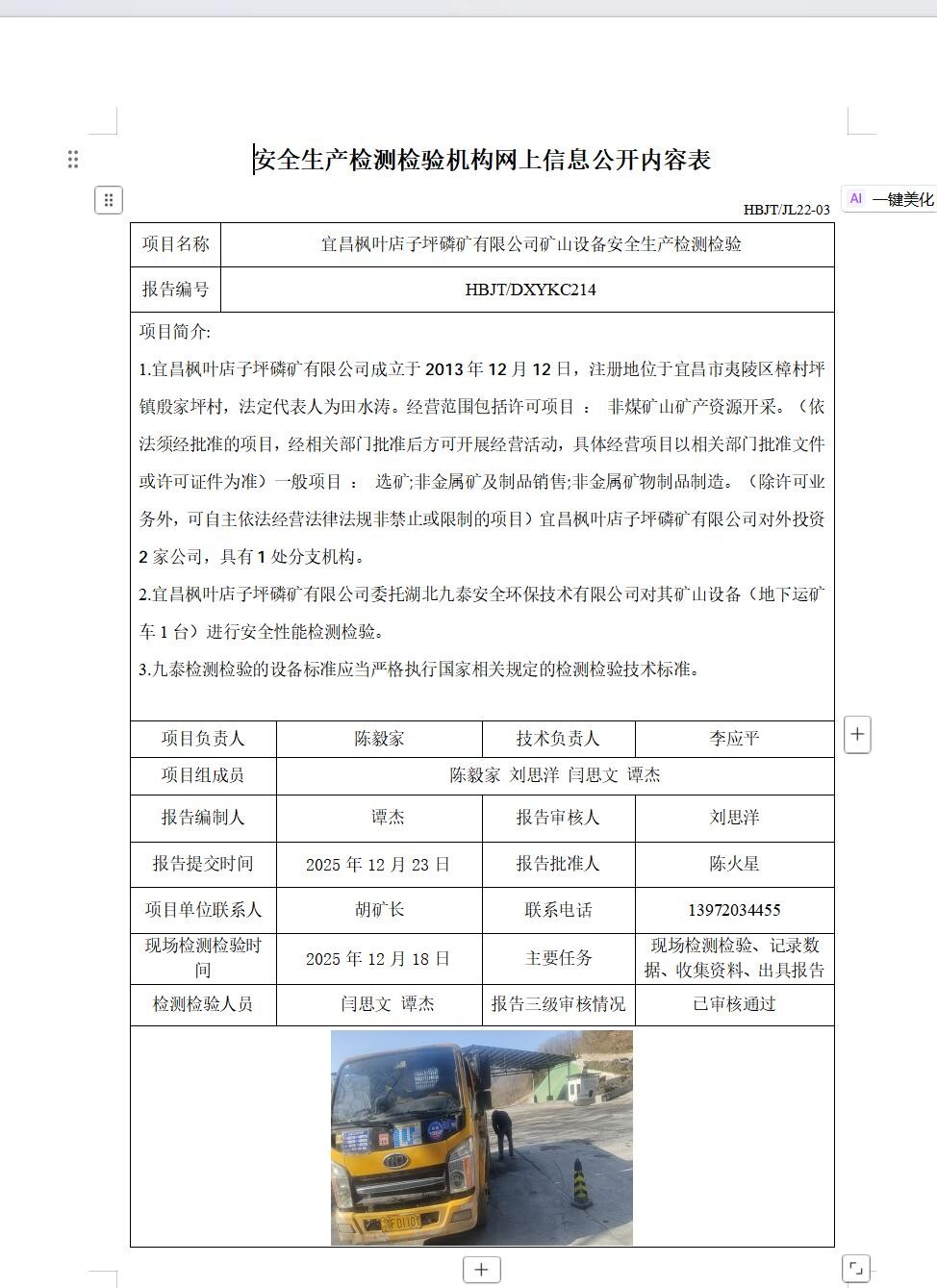 下一篇:?鄂州市銅鑫礦業(yè)有限公司礦山設(shè)備安全生產(chǎn)檢測檢驗(yàn)