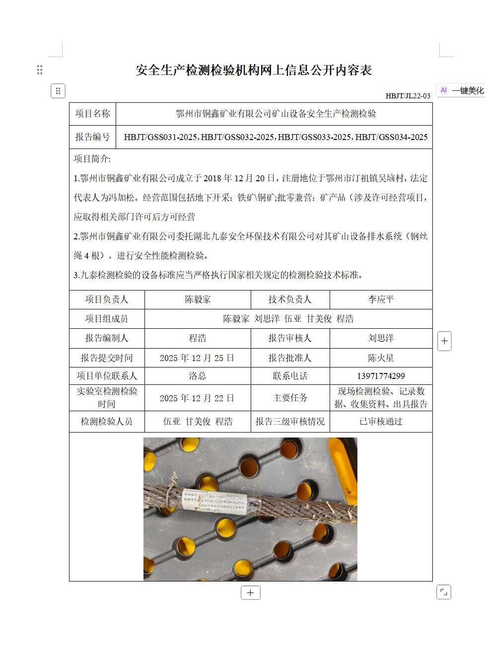 下一篇:?湖北華靈礦業(yè)集團有限公司普慶鐵礦礦山設備安全生產檢測檢驗