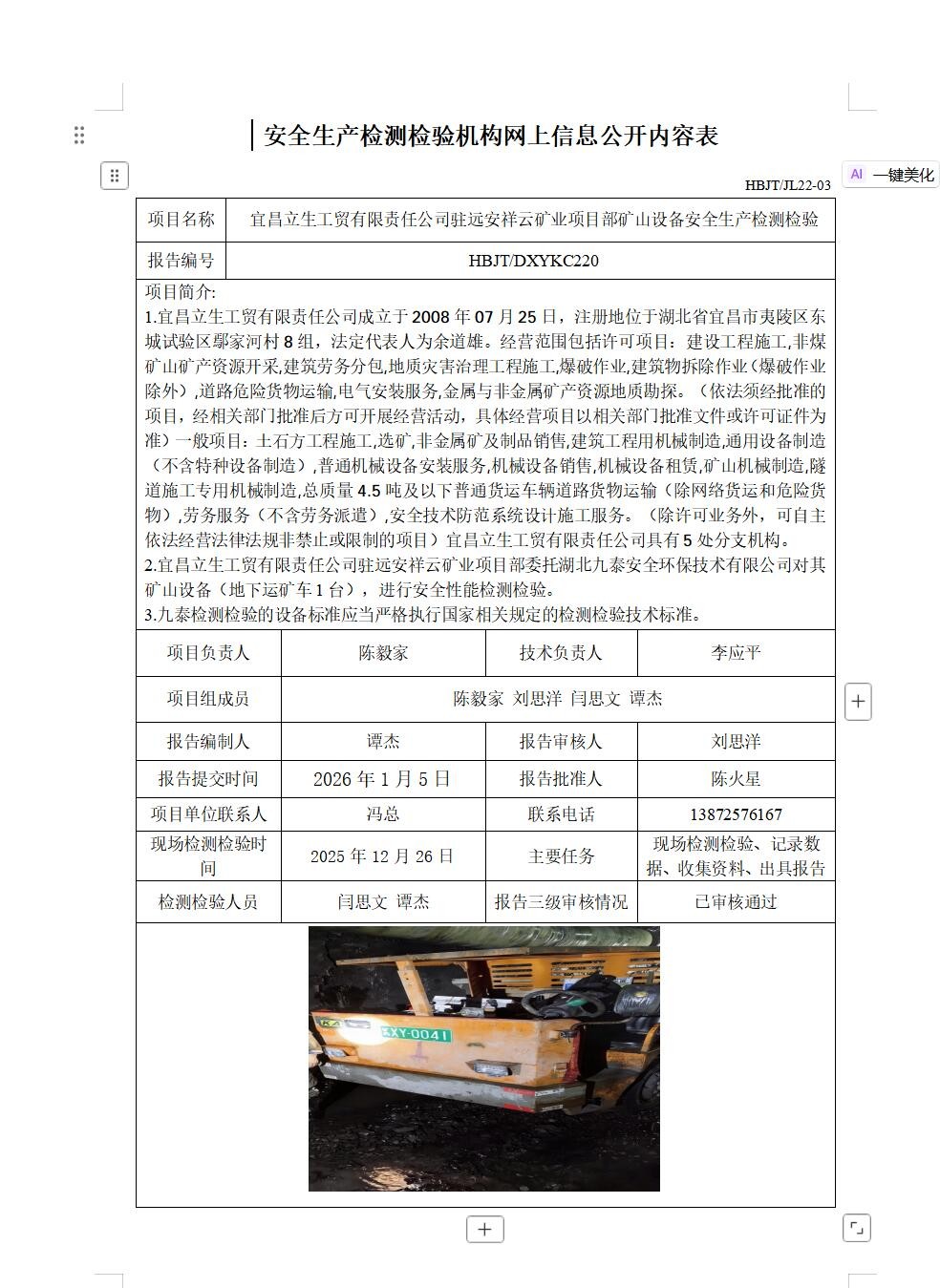 下一篇:?陽新縣鑫華礦業(yè)有限公司礦山設(shè)備安全生產(chǎn)檢測檢驗
