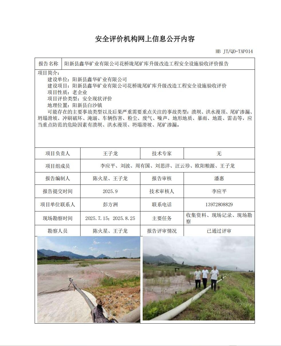 上一篇:?陽新縣鑫晟礦業(yè)有限公司阮家灣尾礦庫安全現(xiàn)狀評價報告安全評價機構(gòu)網(wǎng)上信息公開內(nèi)容