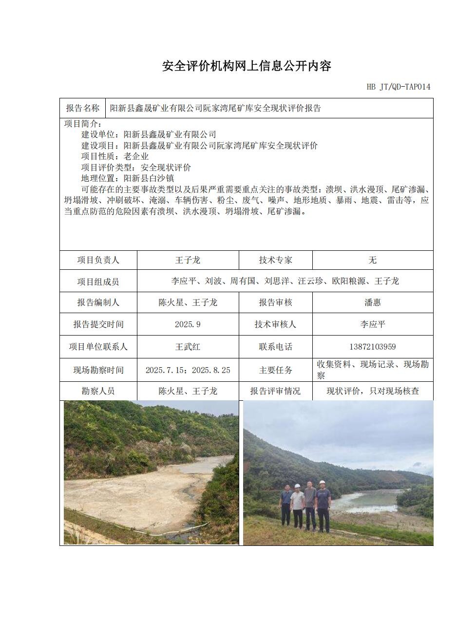 下一篇:?陽新縣鑫華礦業(yè)有限公司花橋垅尾礦庫升級改造工程安全設(shè)施驗收評價報告